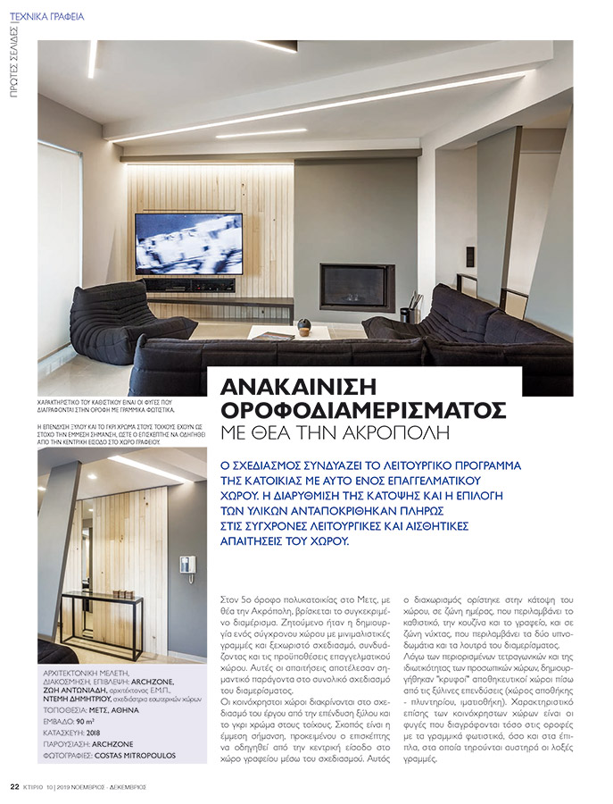 Αναφορά στο τεύχος Νοεμβρίου - Δεκεμβρίου 2019 του περιοδικού Κτίριο σε έργο Ανακαίνισης οροφοδιαμερίσματος με θέα την Ακρόπολη, από το αρχιτεκτονικό γραφείο ArchZone.