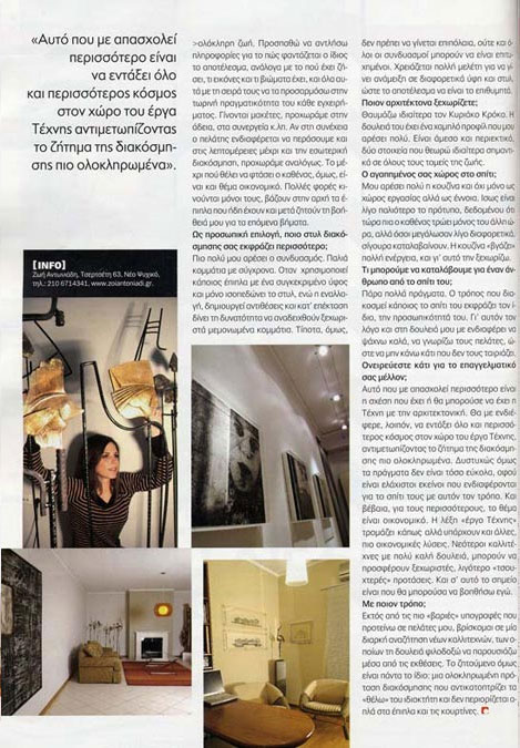 Το αρχιτεκτονικό γραφείο ArchZone παρουσιάστηκε στις σελίδες του περιοδικού Εικόνες Decoration που κυκλοφόρησε με την εφημερίδα Έθνος στις 13 Μαΐου 2007.