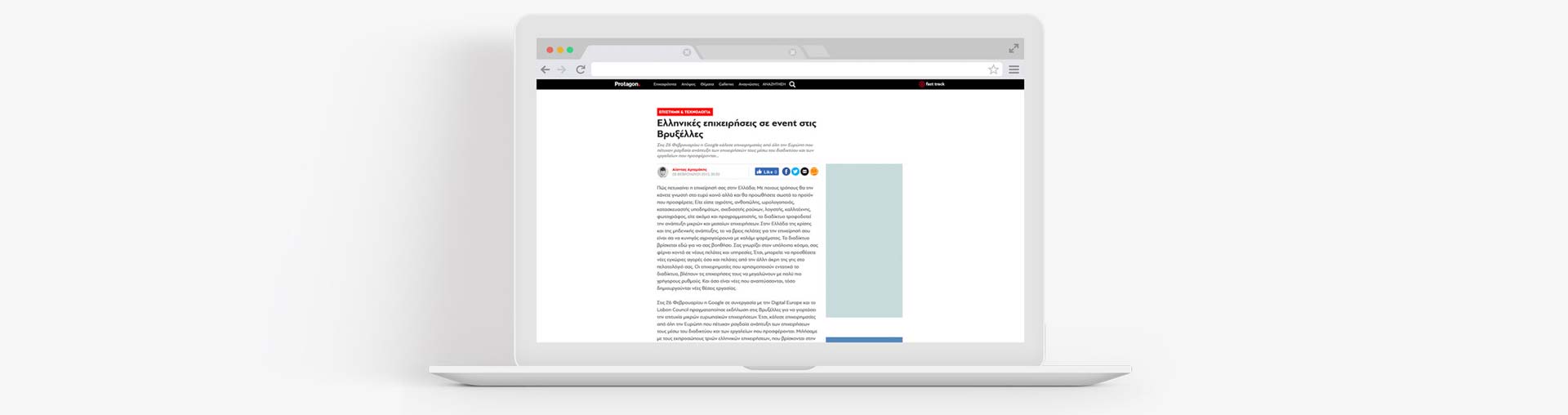Στις 26 Φεβρουαρίου η Google σε συνεργασία με την Digital Europe και το Lisbon Council πραγματοποίησε εκδήλωση στις Βρυξέλλες για να γιορτάσει την επιτυχία μικρών ευρωπαϊκών επιχειρήσεων. Έτσι, κάλεσε επιχειρηματίες από όλη την Ευρώπη που πέτυχαν ραγδαία ανάπτυξη των επιχειρήσεων τους μέσω του διαδικτύου και των εργαλείων που προσφέρονται. Μιλήσαμε με τους εκπροσώπους τριών ελληνικών επιχειρήσεων, που βρίσκονται στην εκδήλωση και ασχολούνται με τον αγροτουρισμό, τα ξενοδοχειακά και την αρχιτεκτονική. Δείτε τι μας είπαν.
